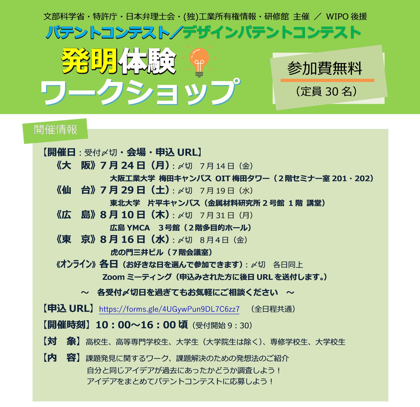 この夏、君のアイデアで特許に挑戦!発明体験ワークショップ<大阪>開催!<仙台/広島/東京>では参加受付中!!