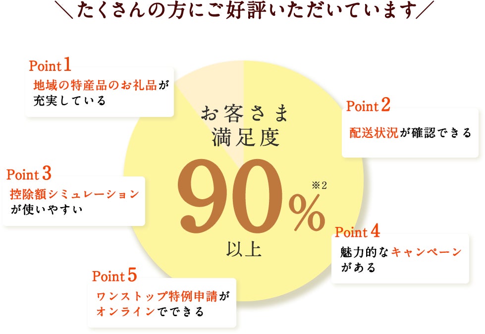 「さとふる」サイトユーザーを対象とした「さとふる」の満足度調査では、90%以上が「満足」「やや満足」と回答しました。