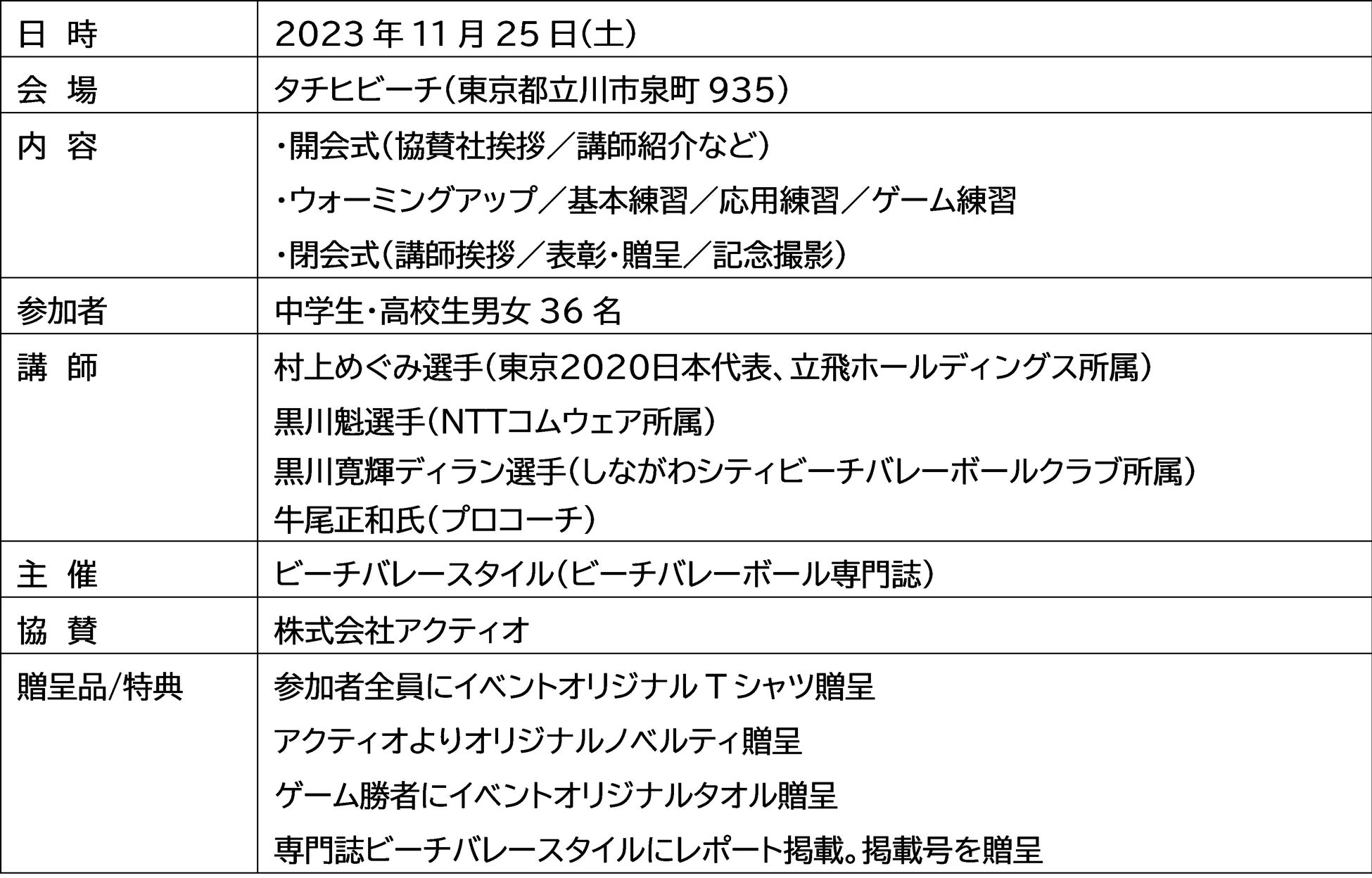 ■「AKTIO アンダーエイジ・ビーチバレーボール・アカデミー」vol.5概要