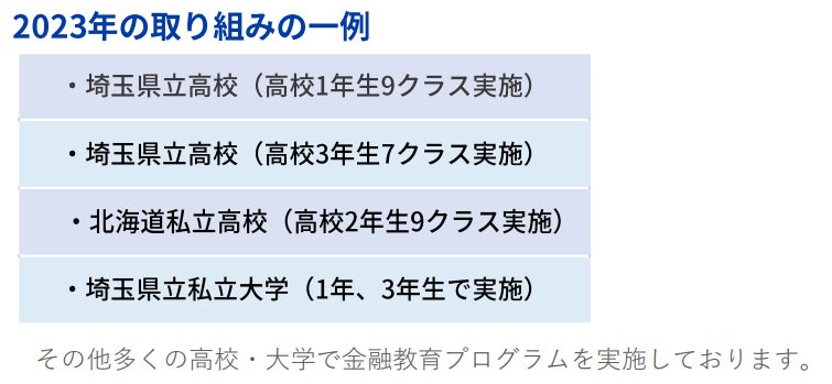 セゾン投信では、特に高校生や大学生などの学びの場における金融教育は重要であると捉えており、独自の金融教育プログラムを開発した合同会社FPal(以下、FPal)と共同で金融教育の活動(出張授業)を行っています。