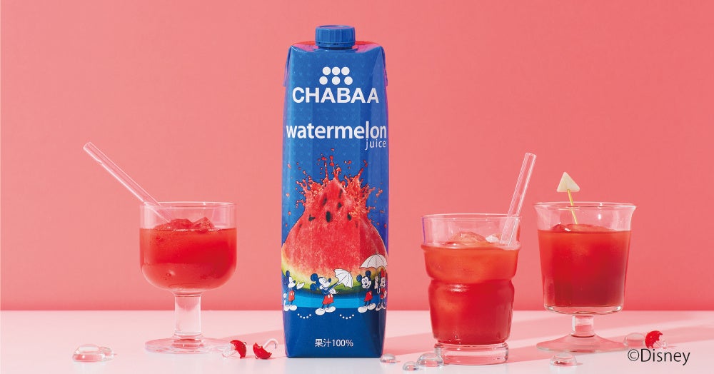 (以下ディズニー)とライセンス契約を結び、「CHABAAウォーターメロンジュース ディズニーデザイン」を2023年6月26日(月)よりスーパー、コンビニエンスストア等で数量限定発売します。