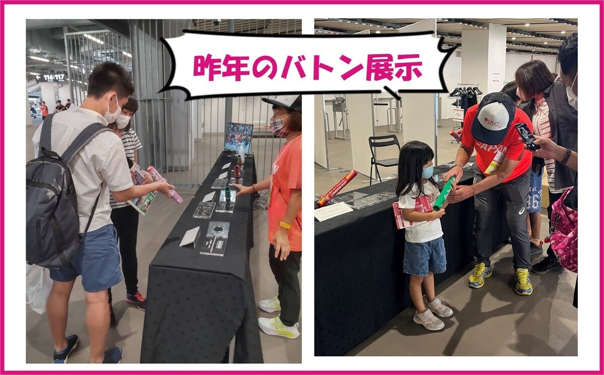 バトン展示では、過去の国際大会でメダルを獲得した日本代表選手たちが実際に決勝のレースで使用した、「想いが詰まった・絆が詰まった本物のバトン」を展示いたします!