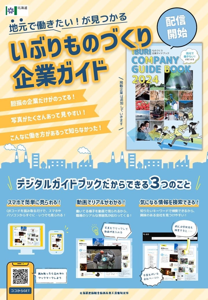 北海道胆振(いぶり)総合振興局では、地元の高卒就職者をターゲットとしたものづくり企業のデジタルガイドブックを公開しました。
