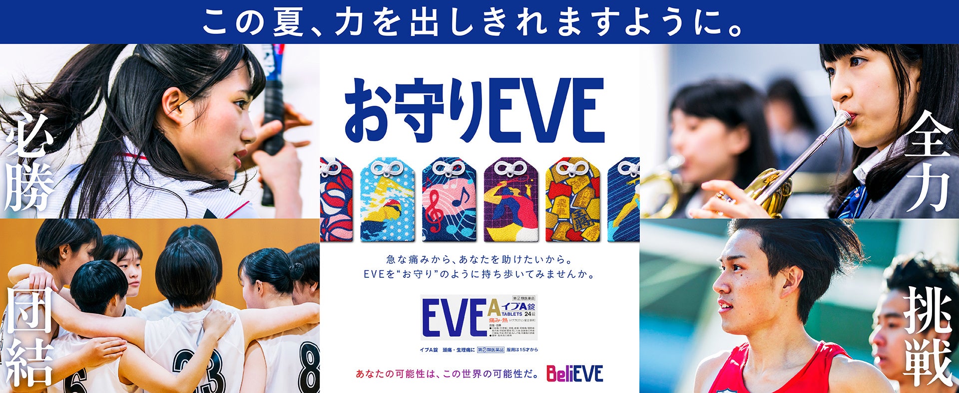 解熱鎮痛薬ブランドのEVE(イブ)は、夢に向かって頑張る人が、どんなときも痛みを我慢することなく、最大限に力を発揮してほしいと考えています。そんな思いから、みなさんの周りにいる夢に向かって頑張る人に、応援の気持ちを込め、お守りを贈っていただけるよう、「お守りEVE(イブ)」キャンペーンをスタートしました。