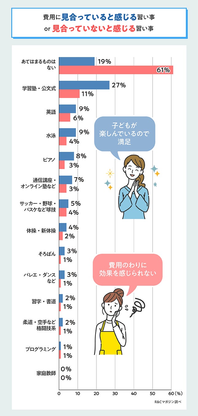 月謝や教材費など、何かとお金がかかる子どもの習い事。費用に見合うだけの効果があるのかどうか、親目線の満足度を調査しました。