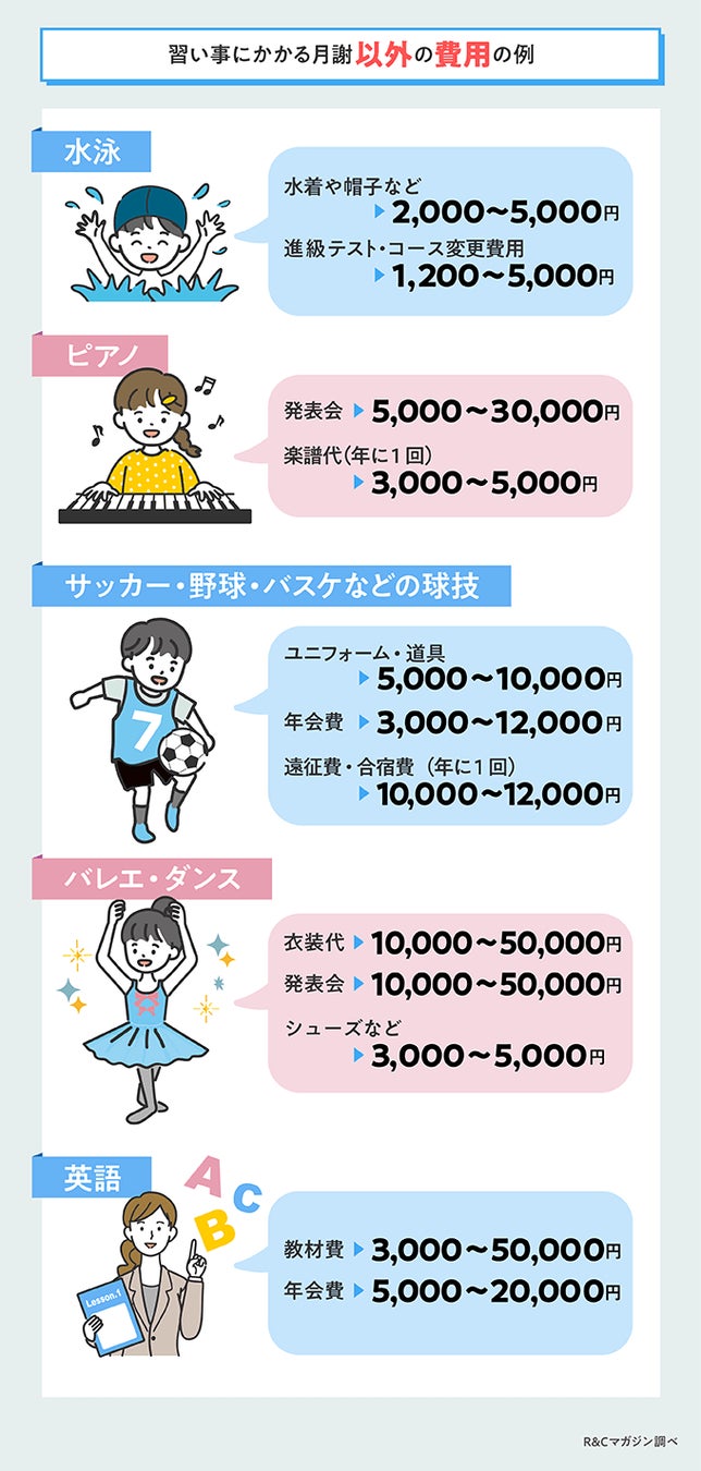 子どもの習い事では、月謝以外の費用がかかることがあります。