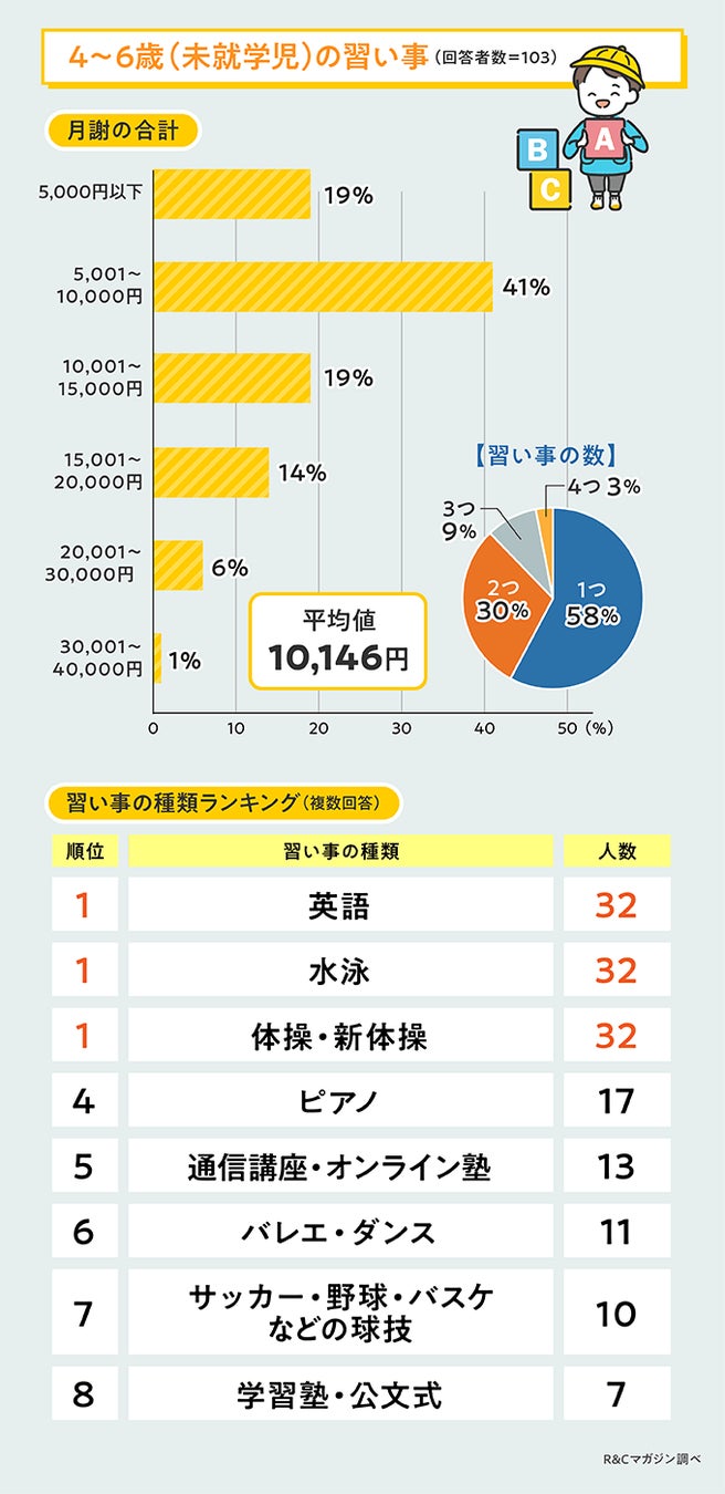 「月謝の合計金額」「月謝合計金額の平均値」「習い事の数」「習い事の人気ランキング」についてまとめ、報告しています。