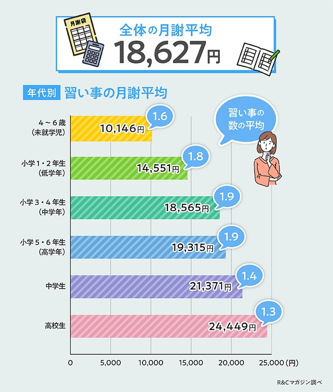 子どもの習い事の月謝平均は18,627円!4歳から高校生の習い事の費用について1,000人に調査