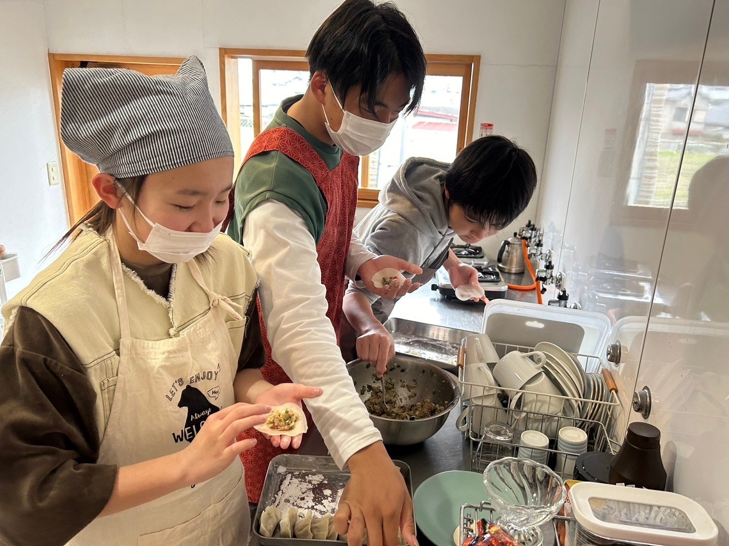特定非営利活動法人キリンこども応援団では、運営する子ども食堂「キリンの家」に通う中学生が自主的に活動する体験事業「Cocca(コッチャ)」を行っています。今年度は、中学生9名がご当地グルメ「泉佐野餃子」の開発・企画を進めており、2024年2月13日(火)に最終試作を実施し、3月3日(日)の子ども食堂で地域の皆様にお披露目します。なお、3月3日は子ども食堂開催前に当団体のサポーターやメディアの皆様に向けてお披露目会を実施します。