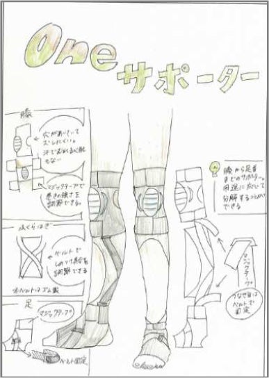 部活動を行う際に着けたいと思うサポーターをデザインしてください。運動部、文化部問わず、様々な場面の中で「ここをサポートしたい」と思う瞬間があると思います。既存の製品を超える、新しいアイデア、デザインを生み出してください。
