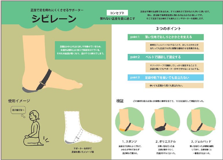 |作品名|正座で足を痺れにくくさせるサポーター シビレーン