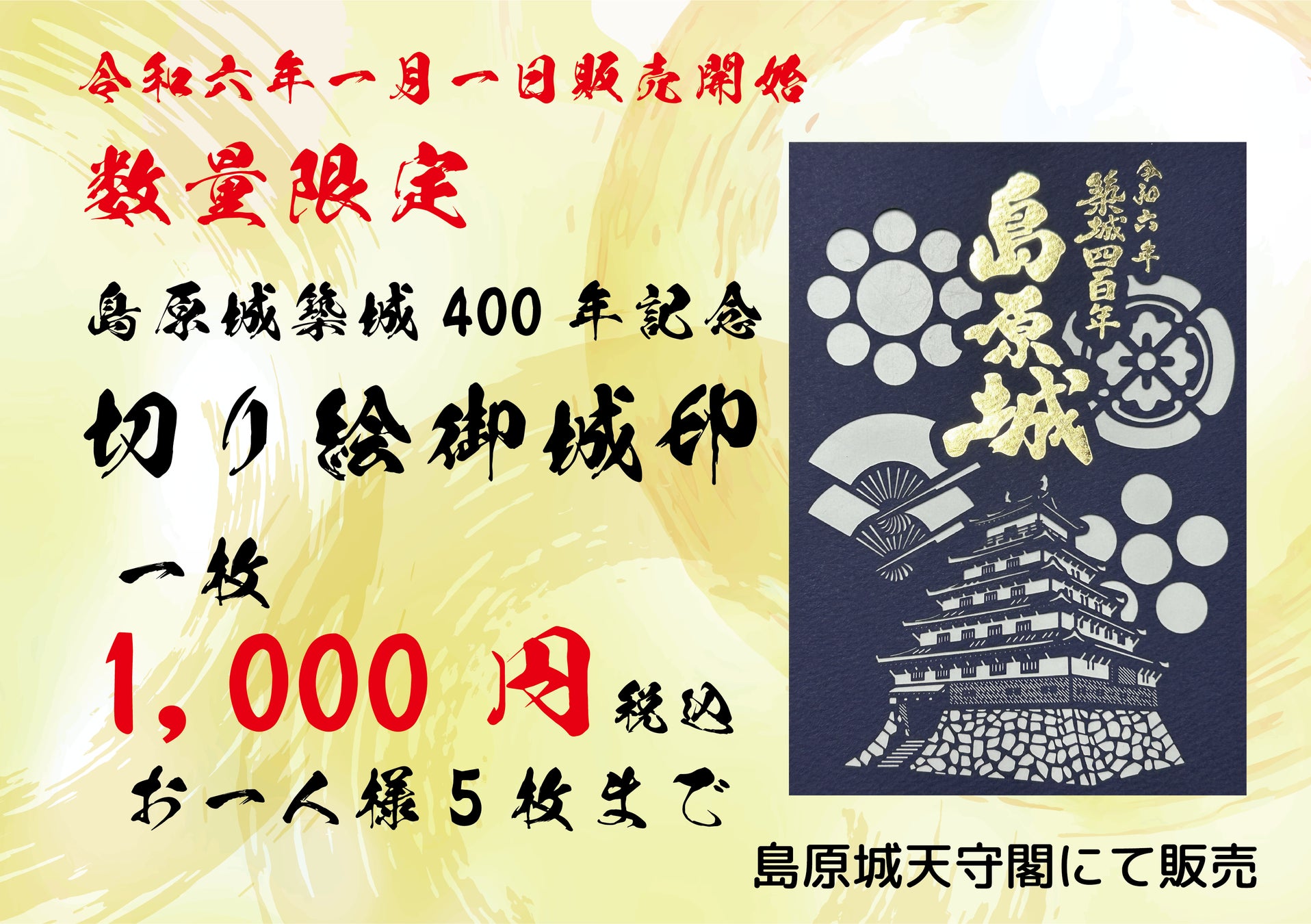 数量限定「島原城築城400年記念 切り絵御城印」販売開始! 2024年は島原城築城400年year!それを記念して切り絵御城印を始め様々なグッズを販売