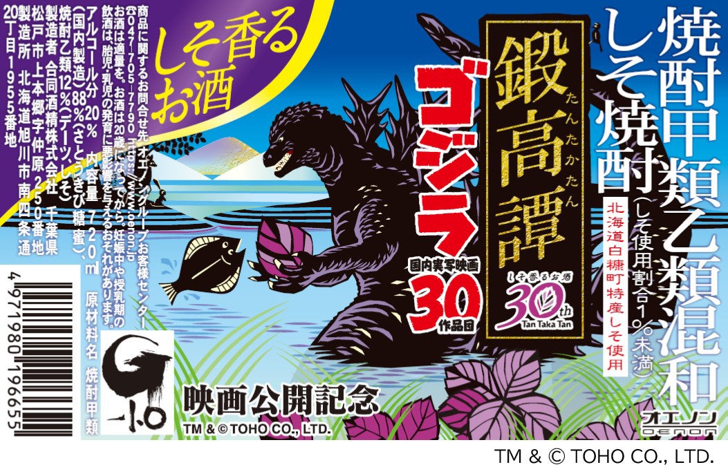 日本を代表する怪獣王「ゴジラ」がラベルに登場!しそ焼酎「鍛高譚」発売30周年とゴジラシリーズ国内実写映画30作品目を記念したコラボ!しそ焼酎「鍛高譚」『ゴジラ-1.0』 コラボラベルが数量限定発売!