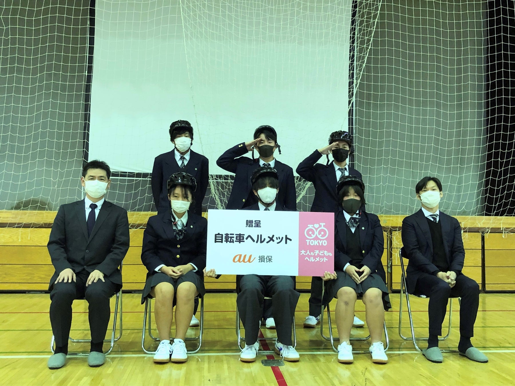au損害保険株式会社(東京都港区)は、2022年11月から2023年3月にかけて、東京都教育委員会自転車安全運転指導推進校を含む4校の生徒に対して、自転車乗車用ヘルメットを合計388個贈呈しました。