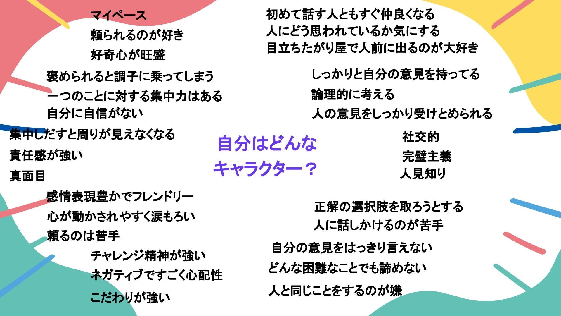 「自分はどんなキャラクター?」「自分がなりたいキャラクターは?」の生徒たちからのアンケート回答に、古谷先生がコメント!