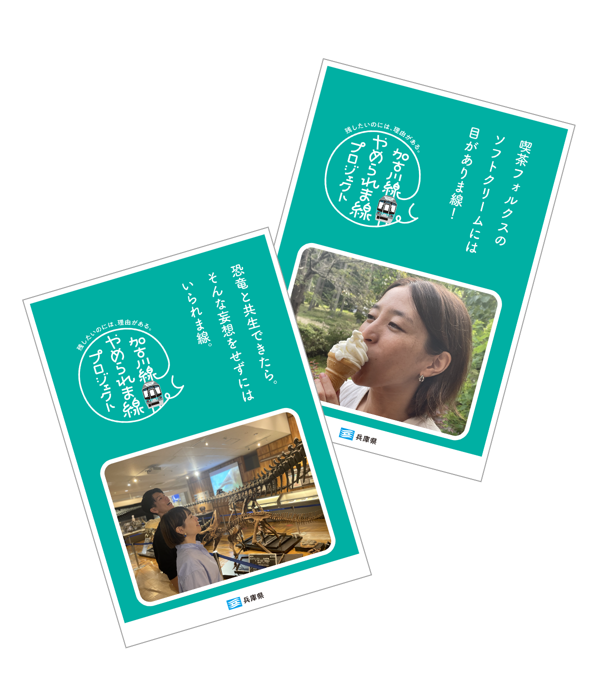 プロジェクトには、通学のため、まちづくりのため、地域を元気にするために、加古川線が日々の暮らしに“欠かせない”方、加古川線なしでは気軽に“味わえない”絶品グルメを届ける方、加古川線なしでは容易に“出会えない”風景や産業に関わる方がメンバーに協力。ポスターやインタビューでは、加古川線の現状や未来へのたくさんの想いと“やめれない”理由を語っていただきました。