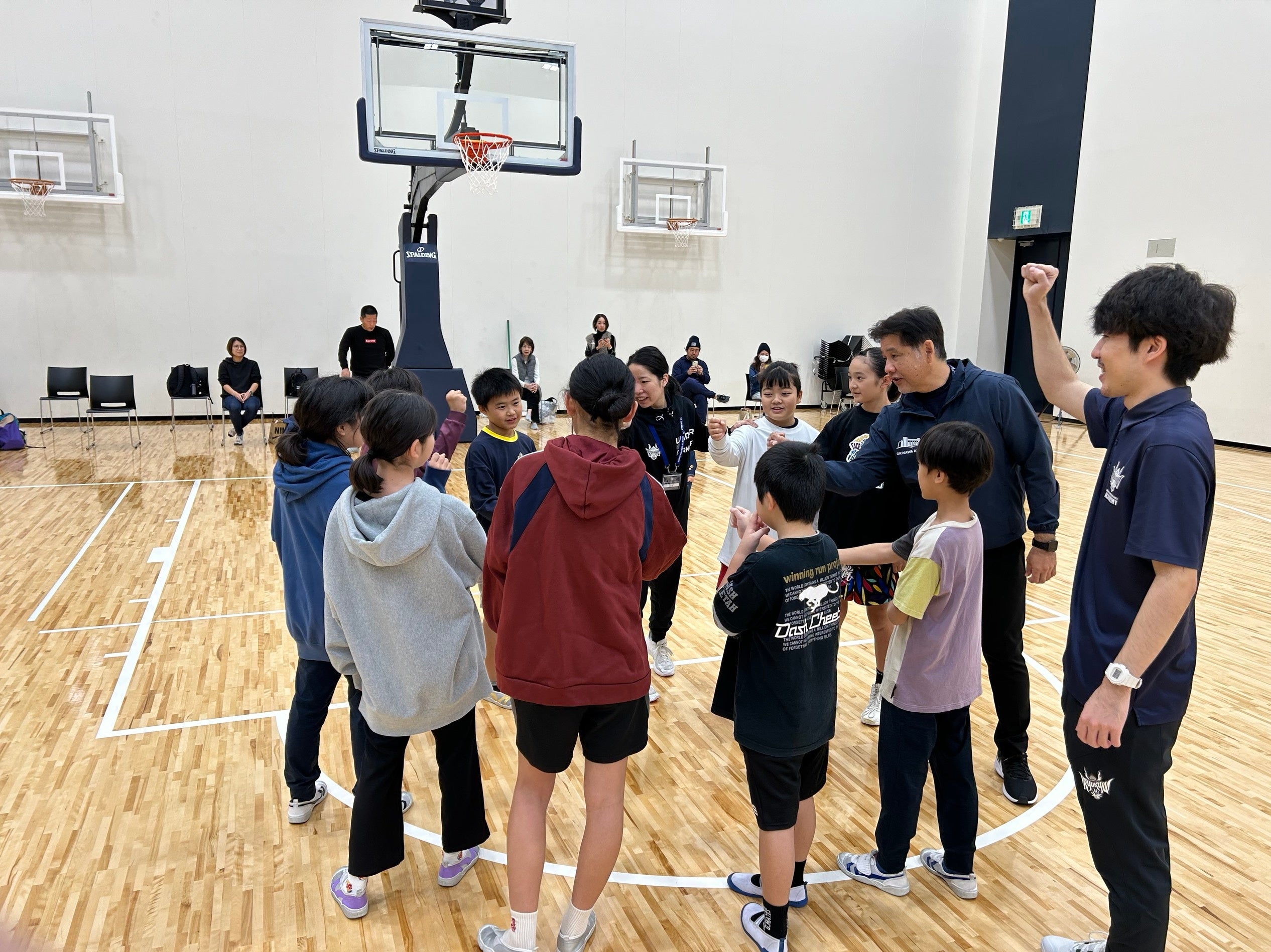 子どもたちはサブアリーナに足を踏み入れた瞬間からワクワクした表情で、教室が始まる前からシュートをしていました。バスケットボールの要素を取り入れたゲームでは、子どもたちが全力で取り組んでおり、チームメイトのプレーに拍手が沸き起こり大いに盛り上がりました。「練習も試合もどちらも楽しかった!」、「2回目だったけどとても楽しかったです。また今度ね!」など、元気な声を聞くことができました。