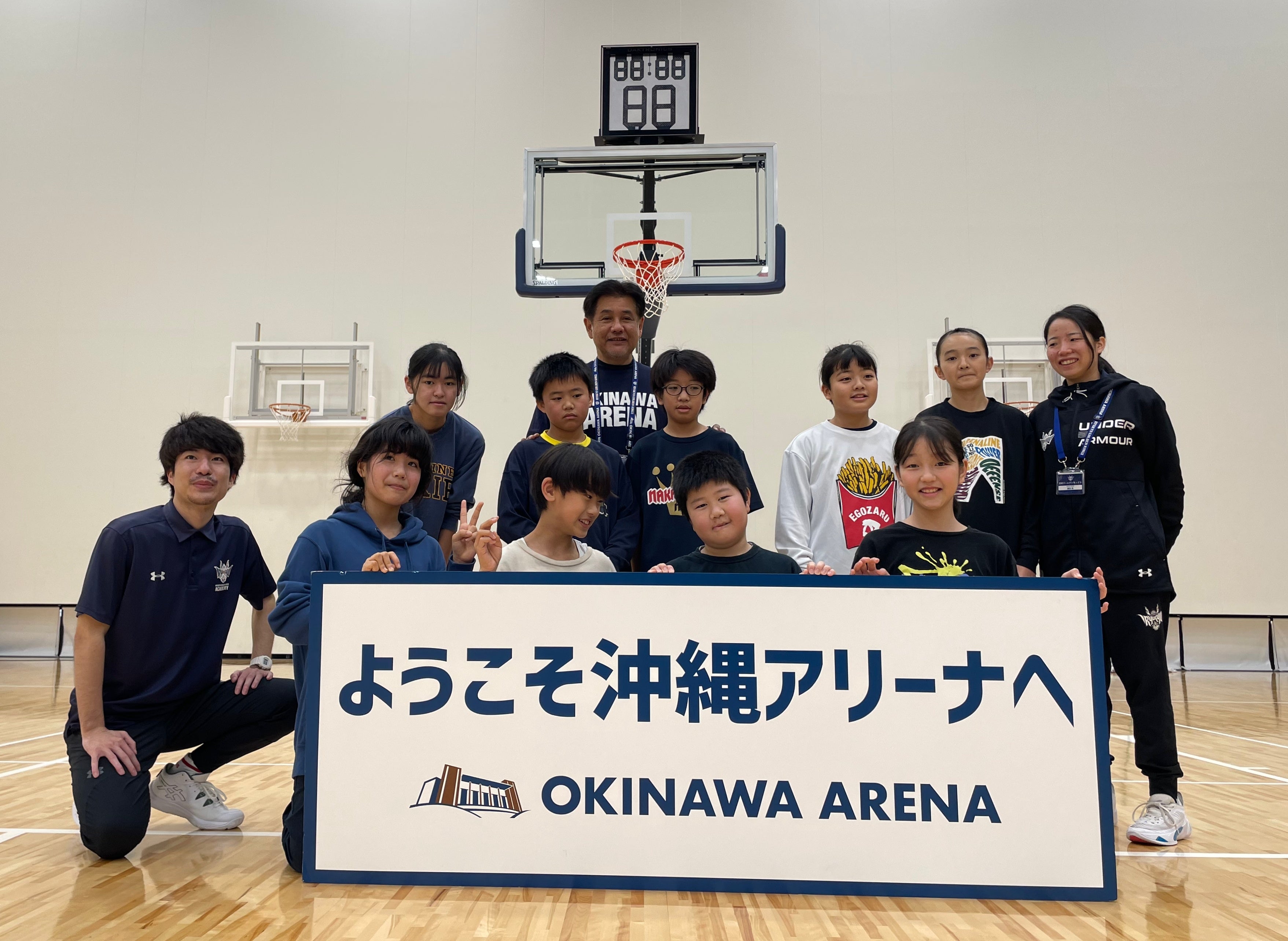 当日は「沖縄市福祉文化プラザ児童センター」から小学3〜5年生9名にご参加いただきました。また、沖縄スポーツアカデミー株式会社から与那嶺翼キングスU18ヘッドコーチとキングスアカデミーのコーチが指導にあたったほか、沖縄アリーナ株式会社からは伊禮勝智取締役が参加しました。