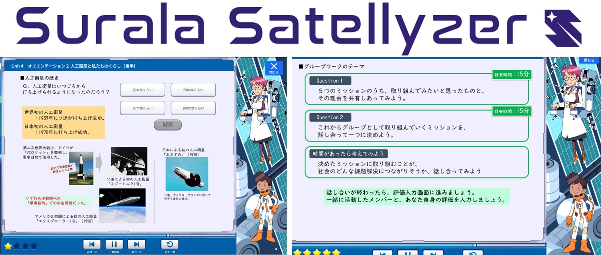 セミナーでは、まず当社から探究学習を取り巻く社会背景と学校現場の課題についてお話します。次に、探究学習の課題に対する解決方法の提案として、6月にリリース予定の探究学習ICT教材「すらら Satellyzer」の機能と学習の狙いをご紹介します。さらに、「すらら Satellyzer」の共同開発に携わったNECスペーステクノロジー株式会社からプロジェクトマネージャーをお招きし、開発に向けた想いや宇宙をテーマにした探究学習の意義についてご講演いただきます。
