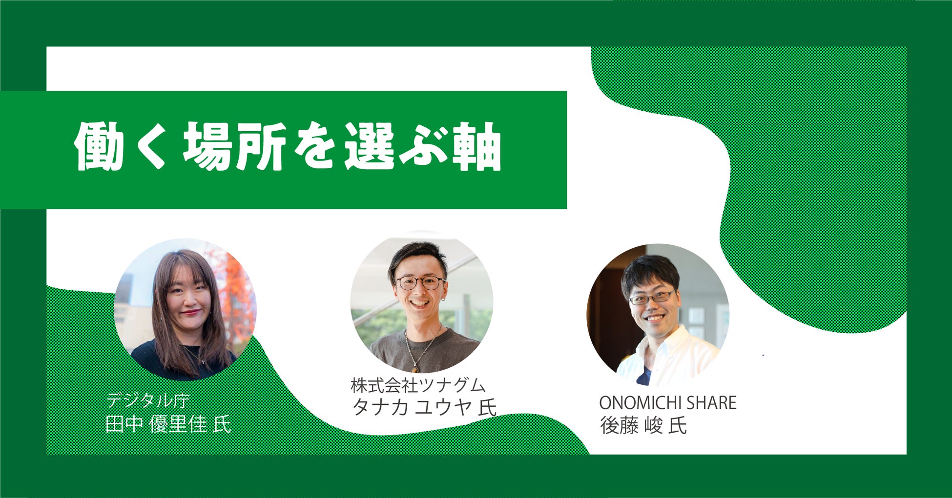 どこで働く、誰と働く、どんな働き方を望む?京都への移住をサポートしてきたタナカユウヤ氏をはじめとする、多彩なエリアで活躍するゲスト3名をお呼びし、何を軸に働く場所を選べばいいのか、それぞれの視点で働く場所について語ります。