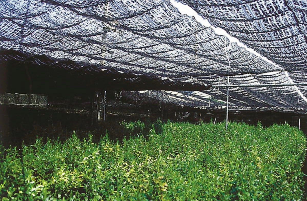 「寒冷紗(かんれいしゃ)」と呼ばれる黒い布を数日間被せることにより、新芽はわずかな日光を求め葉を薄く広げるため、葉緑素が増し、柔らかく鮮やかな緑色になります。そして渋みが抑えられ、旨味が加わる抹茶が完成します。