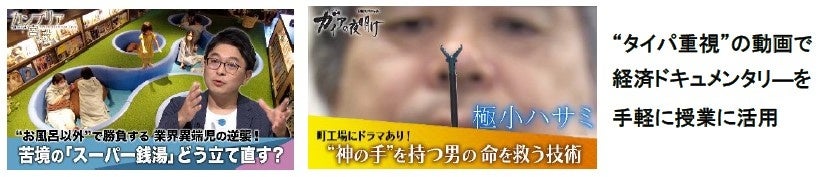 『WBS(ワールドビジネスサテライト)』など、日々のニュースや放送番組だけでなく、配信オリジナル企画として取材した限定コンテンツも教材化。テレビ放送では取り上げることが少ない「地域の課題」や「ミクロな社会課題」も題材に学べます。