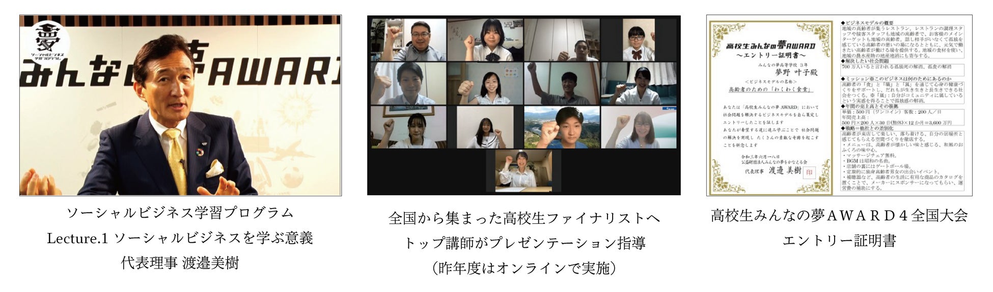 ③エントリー者全員に高校生みんなの夢AWARD4全国大会エントリー証明書を発行