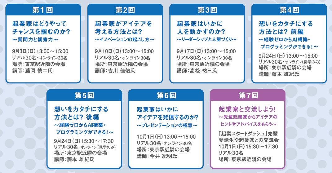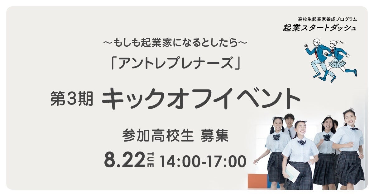 プログラム開始にあたり、高校生の中にある「起業家精神」を触発する対話型のキックオフイベントと、起業に役立つ知識やスキルを習得するための育成講座を開催。6月22日(木)より参加者の募集を開始します。また、同日より、学校向けの探究型アントレプレナーシップ教育教材を制作し、無償で提供しています。授業での導入をご希望の先生方は、この機会にお申込みください。