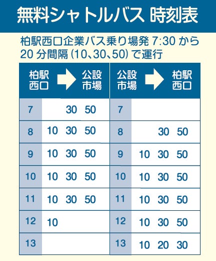 柏駅西口企業バス乗り場から無料のシャトルバスを運行します。