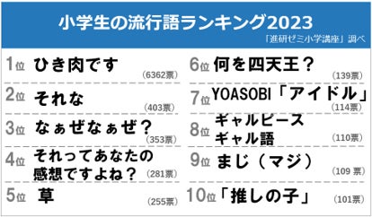 また、今年は初めてTikTok発の「なぁぜなぁぜ?」が3位にランクインしました。身近な疑問や不満を語る時に使う言葉で、小学生には「宿題があるのなぁぜなぁぜ?」「どんだけ部屋を片付けてもすぐ散らかっちゃうのなぁぜなぁぜ?」といった形で使われています。