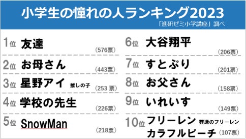 <「進研ゼミ小学講座」 小学生18,000人への意識調査 2023年総決算ランキング>憧れの人ベスト3は「友達」「お母さん」「星野アイ(推しの子)」