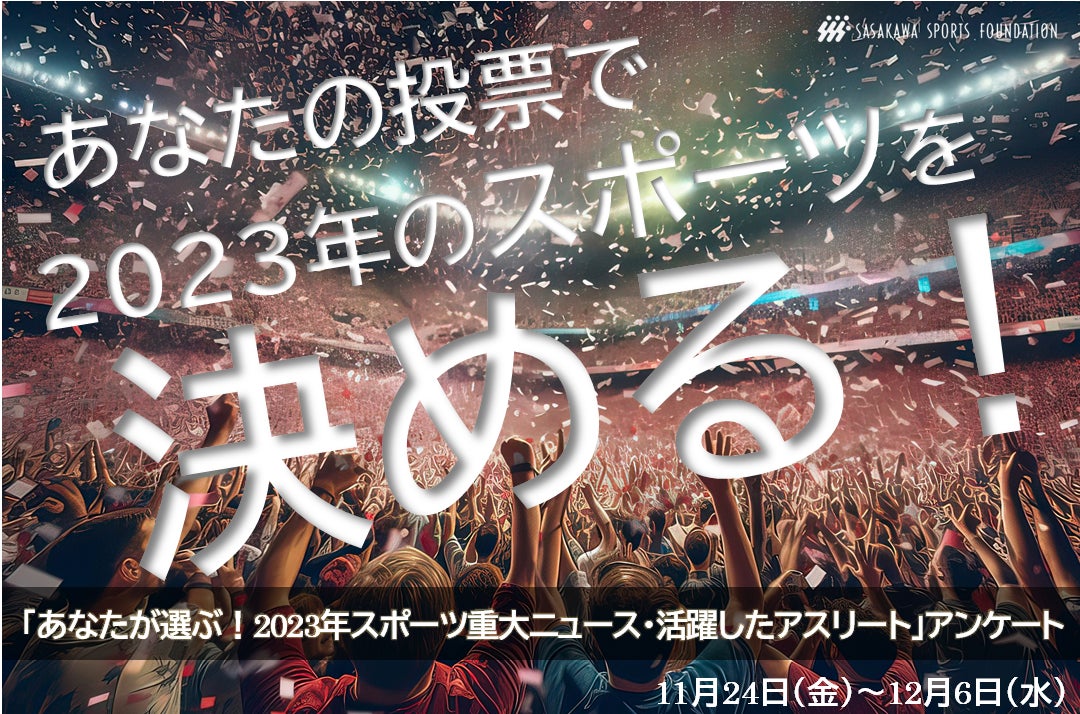 「スポーツ・フォー・エブリワン」を推進する公益財団法人笹川スポーツ財団は、2023年の印象に残ったスポーツ界の出来事を振り返るアンケート「あなたが選ぶ!2023年スポーツ重大ニュース・活躍したアスリート」を、SSFウェブサイト、SNSにて今年も実施いたします。