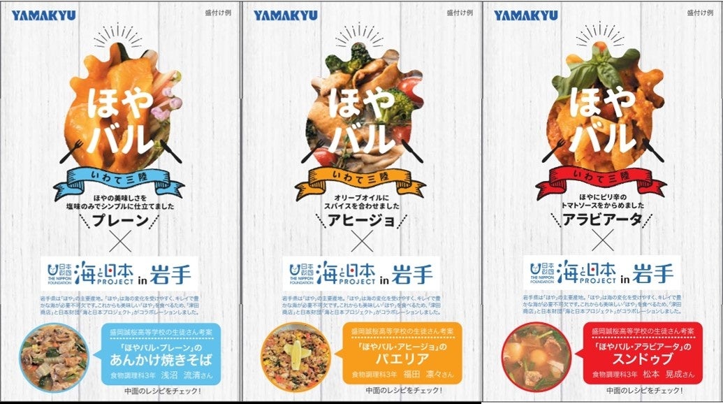 パッケージには「ほやバル」を使用した料理レシピが掲載されています。この料理レシピは盛岡誠桜高等学校の食物調理科の生徒たちが、食を通して「岩手の海」や「ほや」の魅力を発信していきたいと創意工夫を凝らして考案したものです。ご購入いただいた方には生徒が紹介するレシピ動画もご視聴していただけます。