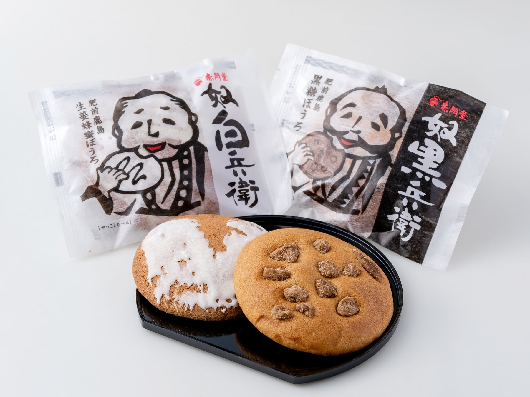 生地に黒糖や丸大豆醬油こうじ、黒みりんを練り込み表面に粒々の黒糖をのせた『奴黒兵衛』、生地に奄美諸島の粗糖、淡口醬油こうじ、白みりんを練り込み表面に白い生姜蜜をりんかけした『奴白兵衛』、佐賀県産の温州みかんを使った『みかんぼうろ』をセットにした、丸ぼうろの食べくらべセット。