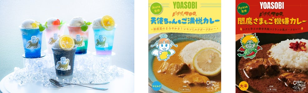 第2弾オリジナルカレーは、“Ayase監修 閻魔さまもご機嫌カレー“と”ikura監修 天使ちゃんもご満悦カレー“の2種類の発売となります。“Ayase監修 閻魔さまもご機嫌カレー“は、コクと辛さを併せ持つ、とんこつ出汁の効いたスリランカ風ポークカレー、”ikura監修 天使ちゃんもご満悦カレー“は、レモンの酸味と白桃の自然な甘さに加え、ミルクやチーズのまろやかさを加えた新感覚のカレーとなっています。