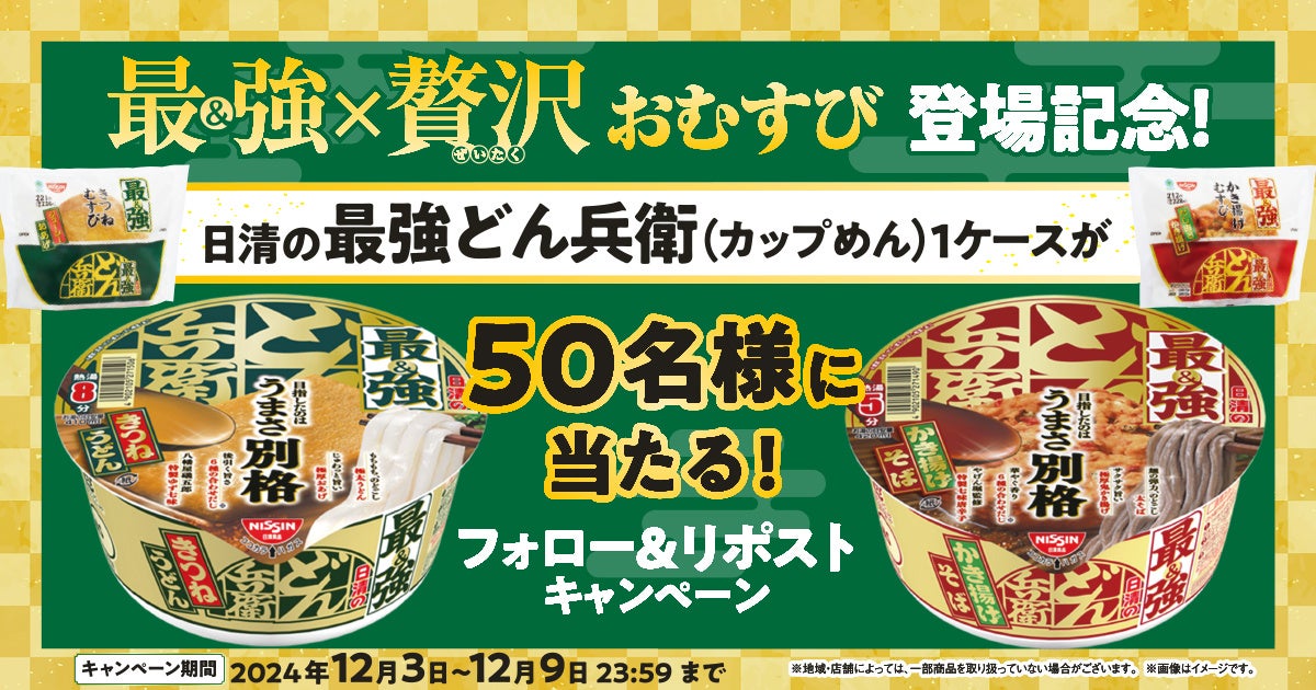 ■最強×贅沢おむすび登場記念!「日清の最強どん兵衛(カップめん)」1ケースが当たる! フォロー&リポストXキャンペーンを実施!