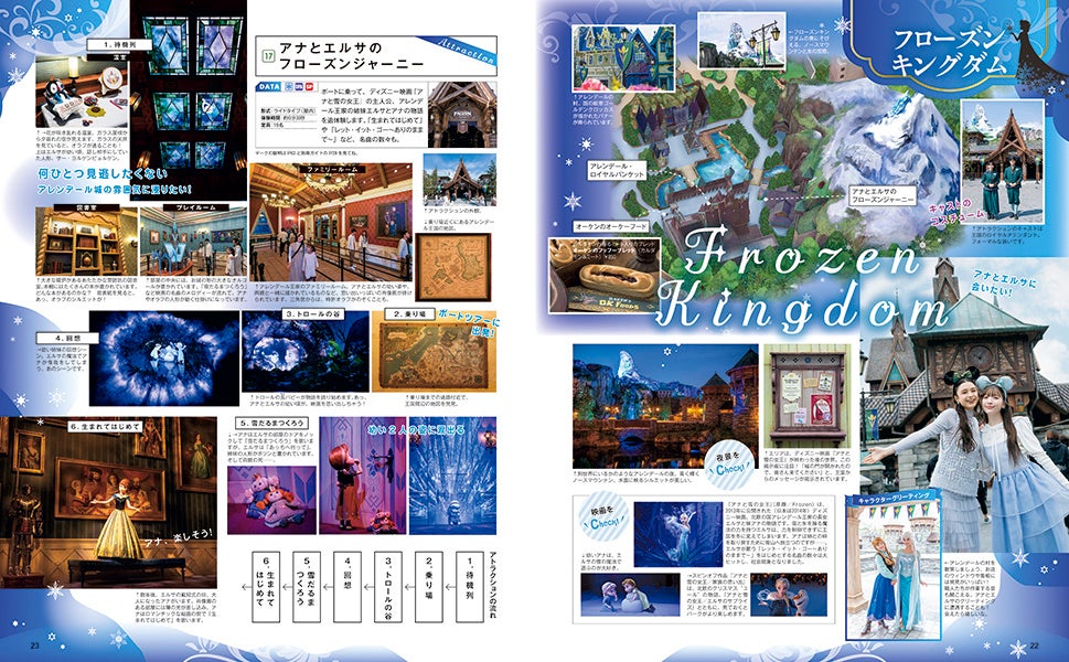 後半の「GUIDE」部分は、東京ディズニーリゾートのアトラクション、エンターテイメント、レストラン、ショップをわかりやすく網羅しています。