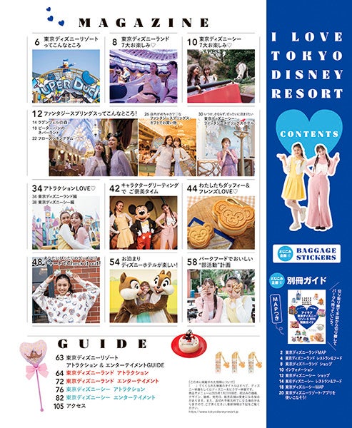 そのほかパークに行ったら絶対体験したいアトラクションの特集や、おいしいパークフード、東京ディズニーリゾートでしたいこと、チャートでわかるぴったりのグッズ、大人気ダッフィー&フレンズ情報などお役立ち記事が満載です。