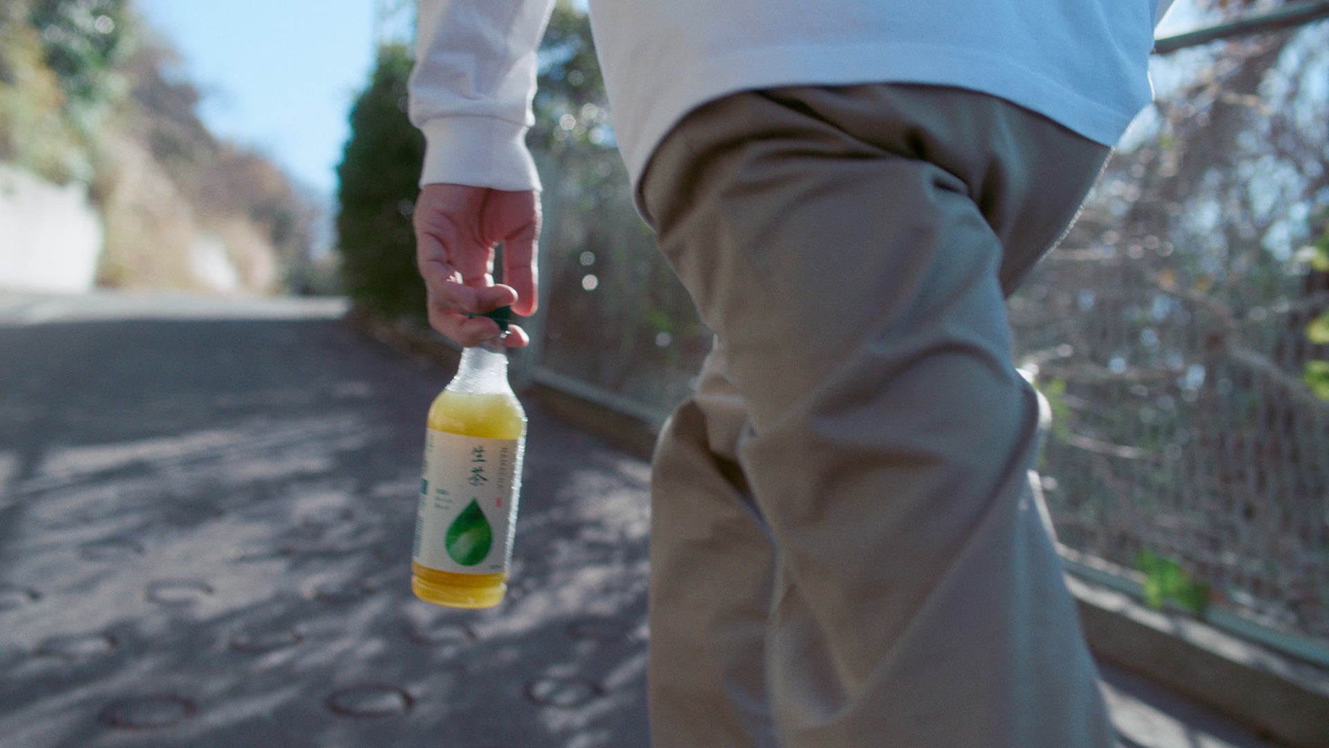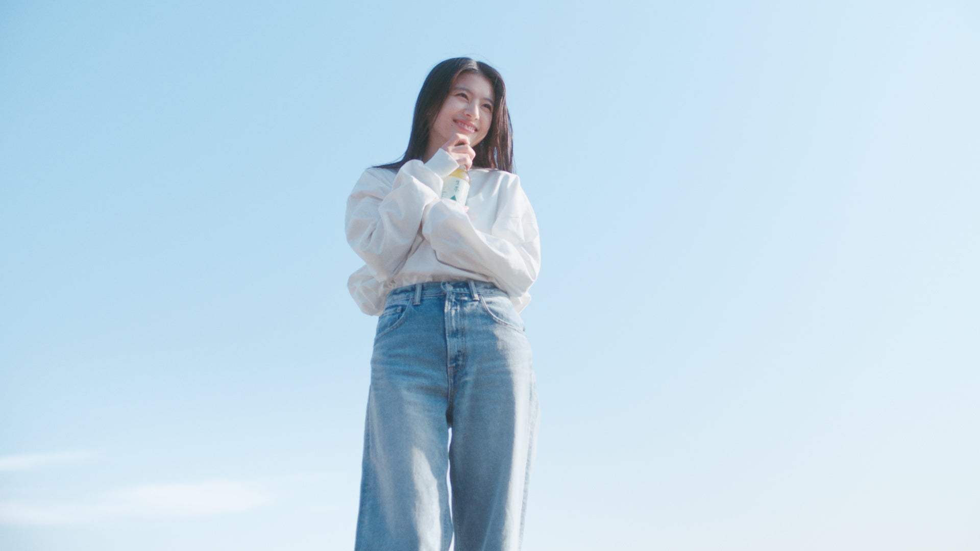鈴木さんの撮影では、三浦半島の西海岸エリアを舞台に、晴れやかな青空が広がった雲一つない晴天での撮影となりました。撮影の合間には自身のスマートフォンで景色を撮影する場面もあり、鈴木さんの笑顔も見られる全体的にリラックスした雰囲気で行われました。撮影本番の声がかかると、鈴木さんは生茶のボトルの持つ位置や飲み方など細かい部分にこだわりながら、真摯に撮影に向き合っていました。