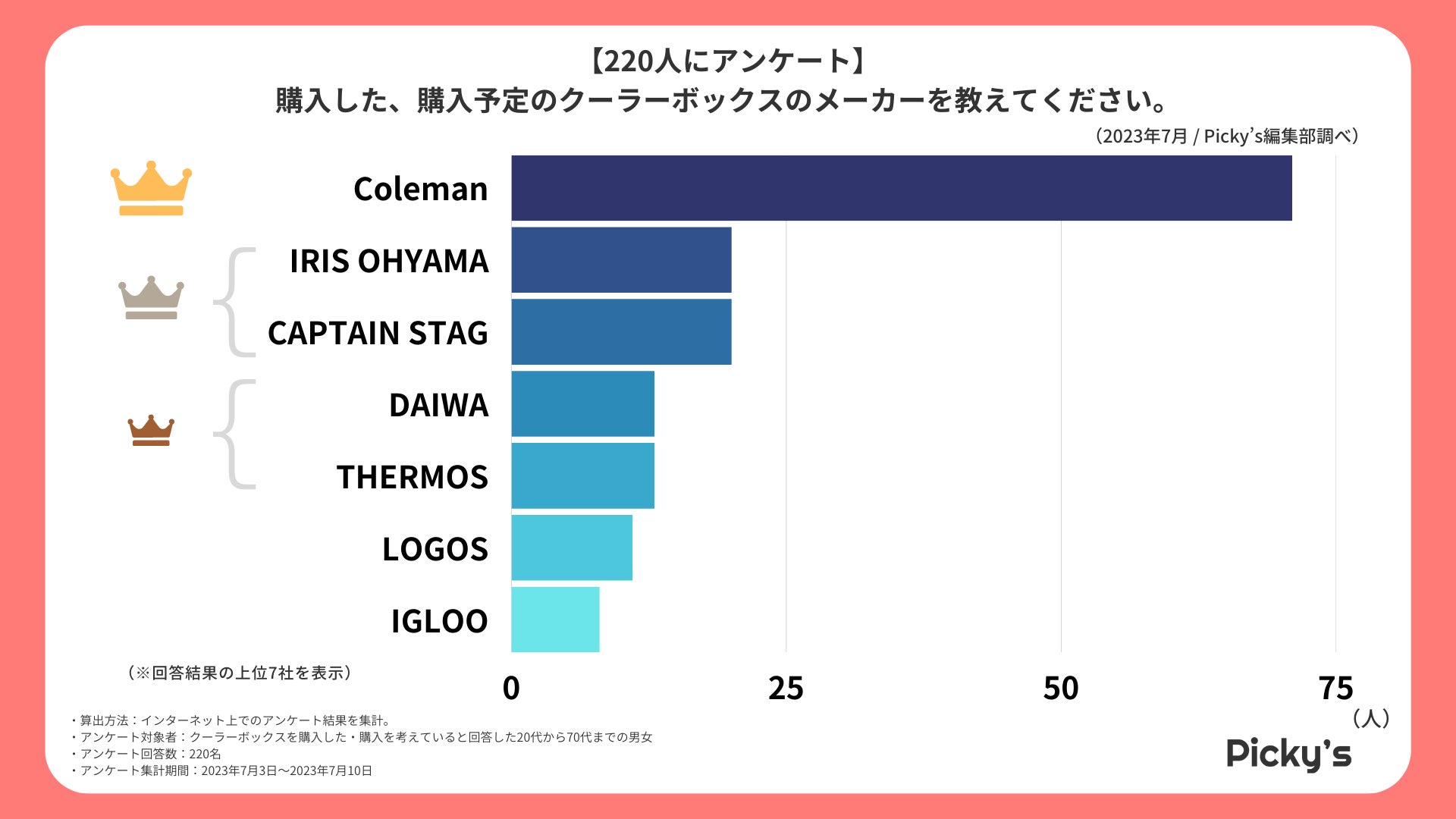 同じように、「CAPTAIN STAG(キャプテンスタッグ)」「LOGOS(ロゴス)」などといったアウトドアブランドも挙がっていることから、アウトドアブランドのクーラーボックスも人気のようです。