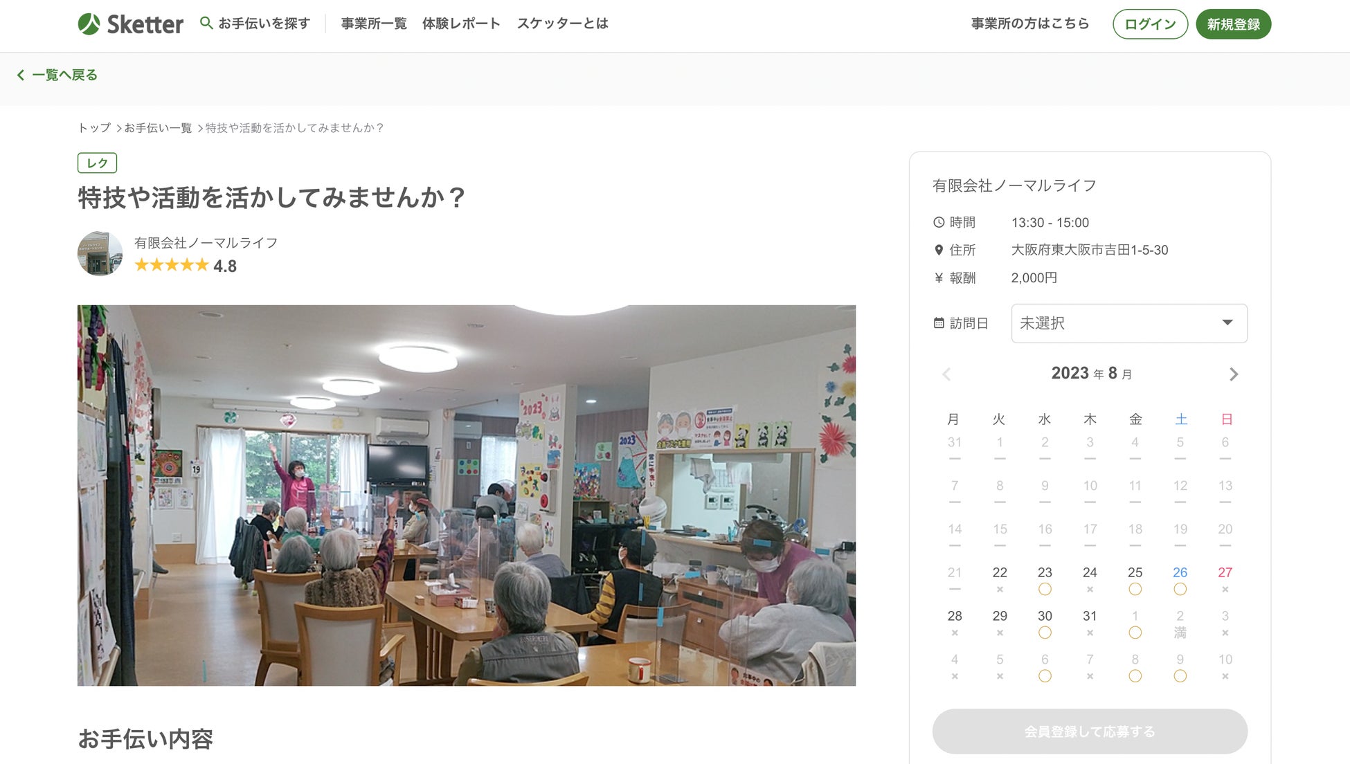 介護職のマッチングサイト「スケッター」:https://www.sketter.jp/spots/11528