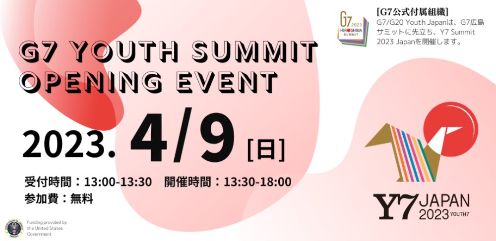 4月9日 G7 Youth Summit オープニングイベント(会場:早稲田大学 国際会議場 井深大記念ホール(予定)):https://y7summit2023openingevent.peatix.com/