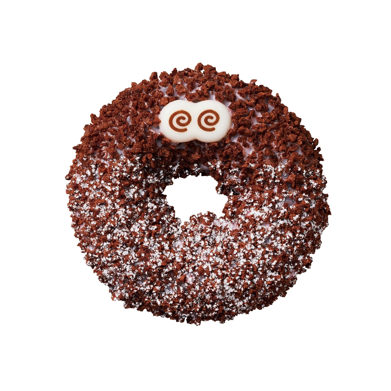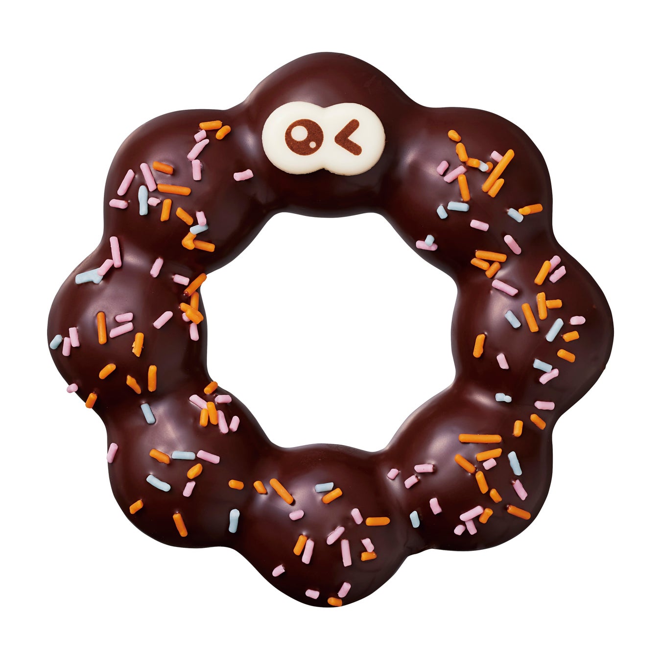ポン・デ・リング生地にチョコレートをコーティング。チョコの目がチャームポイントのチョコデビルドーナツ。