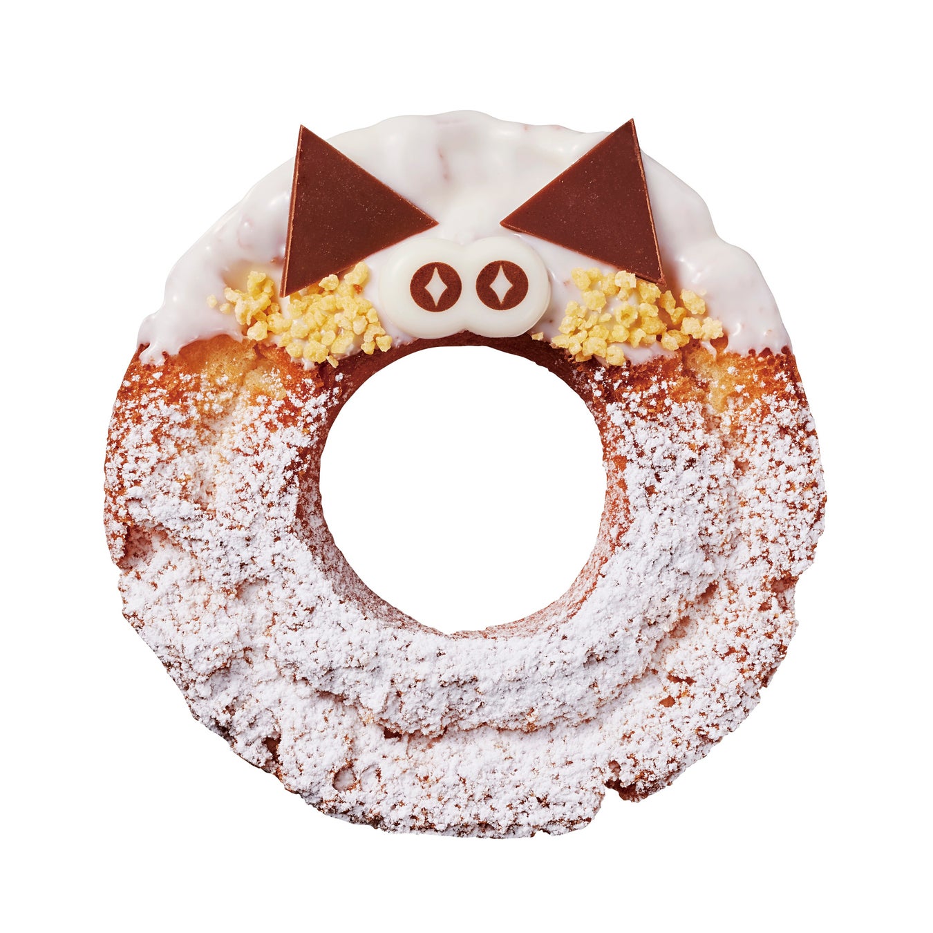 オールドファッション生地にかわいいチョコの耳と目をトッピングし、ほっぺにゴールデントッピングをつけてドーナツシュガーで白猫を表現した「ホワイトファッションキャット」や、フレンチクルーラー生地にチョコレートをコーティングし、チョコの耳と目ときなこシュガーで仕上げた黒ねこドーナツ「ブラックフレンチキャット」、人気のポン・デ・リング生地にチョコレートをコーティングして、カラフルなチョコスプレーをトッピングした「ポン・デ・チョコデビル」など、にぎやかで楽しいおばけのドーナツ全5種をご用意しました。さらに、今年は‟ウィンク“や‟うるうる”などチョコの目が合計で11種類。様々な表情をしたドーナツが選べます。